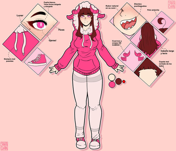 ✦La hoja contiene: el personaje de cuerpo completo, descripción de los accesorios, paleta de colores y vistas alternativas.